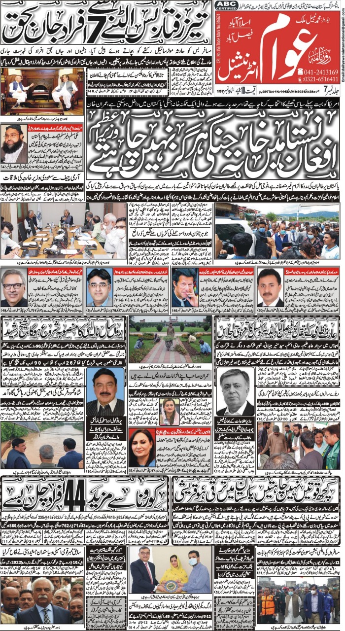 Awam is Urdu اردو Epaper of Pakistan region Asia. Daily Alakh Daily Qaumi Akhbar Daily Intekhab Daily Udaan Daily Ummat Daily. روزنامہ اخبار خیبر آن لائن مفت پڑھیں پشاور اور اسلام آباد سے بیک وقت شائع ہونے واحد اخبار.
